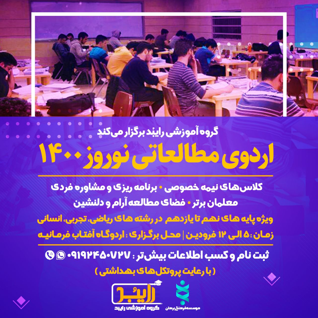 🔼 در ادامه طرح #علمی شهید احمدی روشن، گروه آموزشی #رایبد برنامه #آموزشی_مطالعاتی عید نوروز را به شرح ذیل برگزار مینماید: