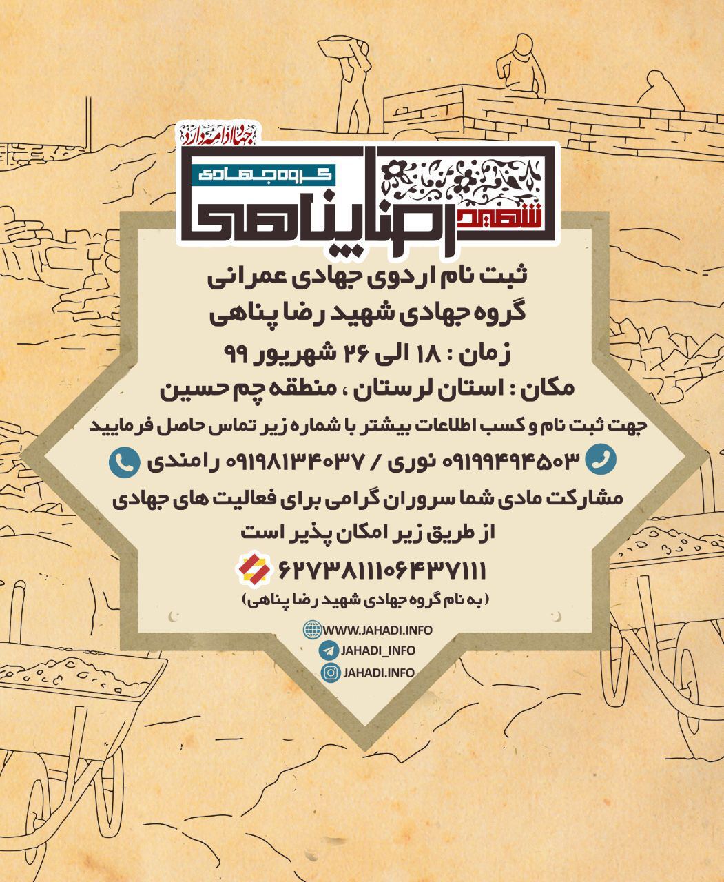 🗒 ثبت نام اردوی جهادی عمرانی گروه جهادی شهیدرضا_پناهی