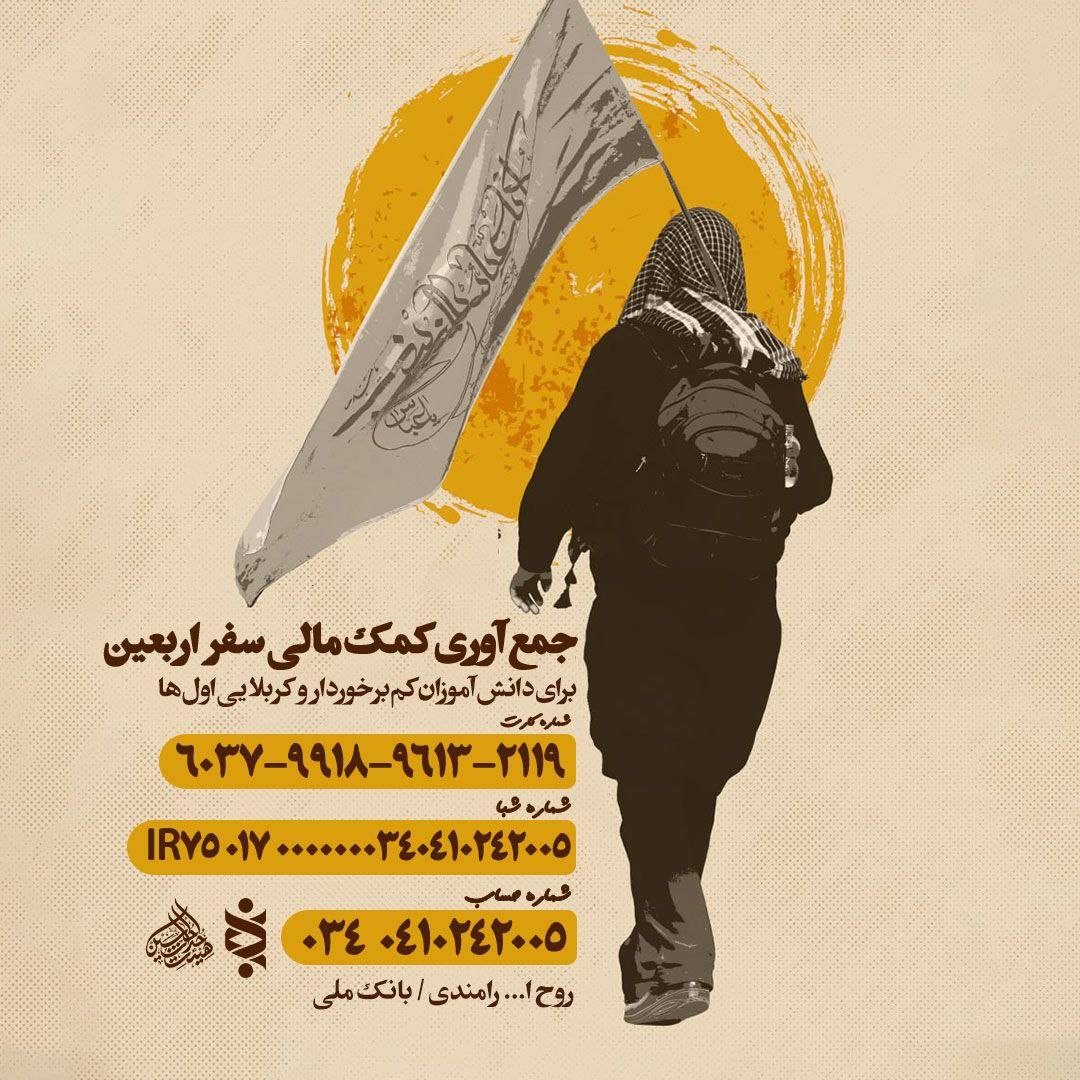 کاروان زیارتی اربعین هیئت حداث الحسین (ع) در نظر دارد تا به دانش آموزان بی بضاعت و #کربلاییاولیها کمک هزینه سفر اربعین اعطا کند.