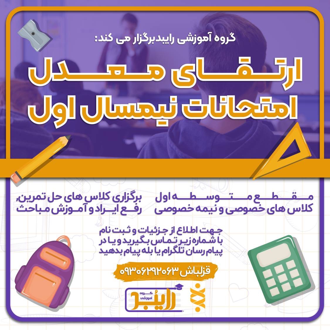 برای کسب اطلاعات بیشتر و ثبت نام، با شماره ذیل تماس بگیرید و یا داخل پیام رسان “بله” یا “تلگرام” پیام بدهید: