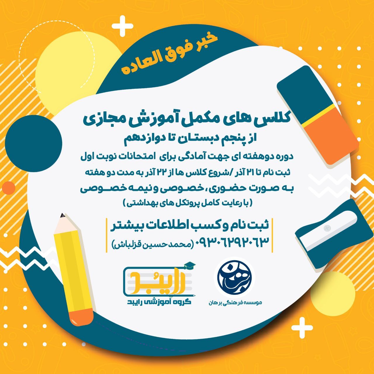 💢 شروع کلاس ها از ۲۲ آذر به مدت دو هفته