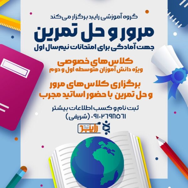 🔔گروه آموزشی رایبد برگزار می کند:Borhanدسامبر 18, 2024🔔گروه آموزشی رایبد برگزار می کند: 📒کلاس های مرور و حل تمرین ویژه امتحانات نوبت اول 🟣کلاس های خصوصی و ... ادامه مطلب